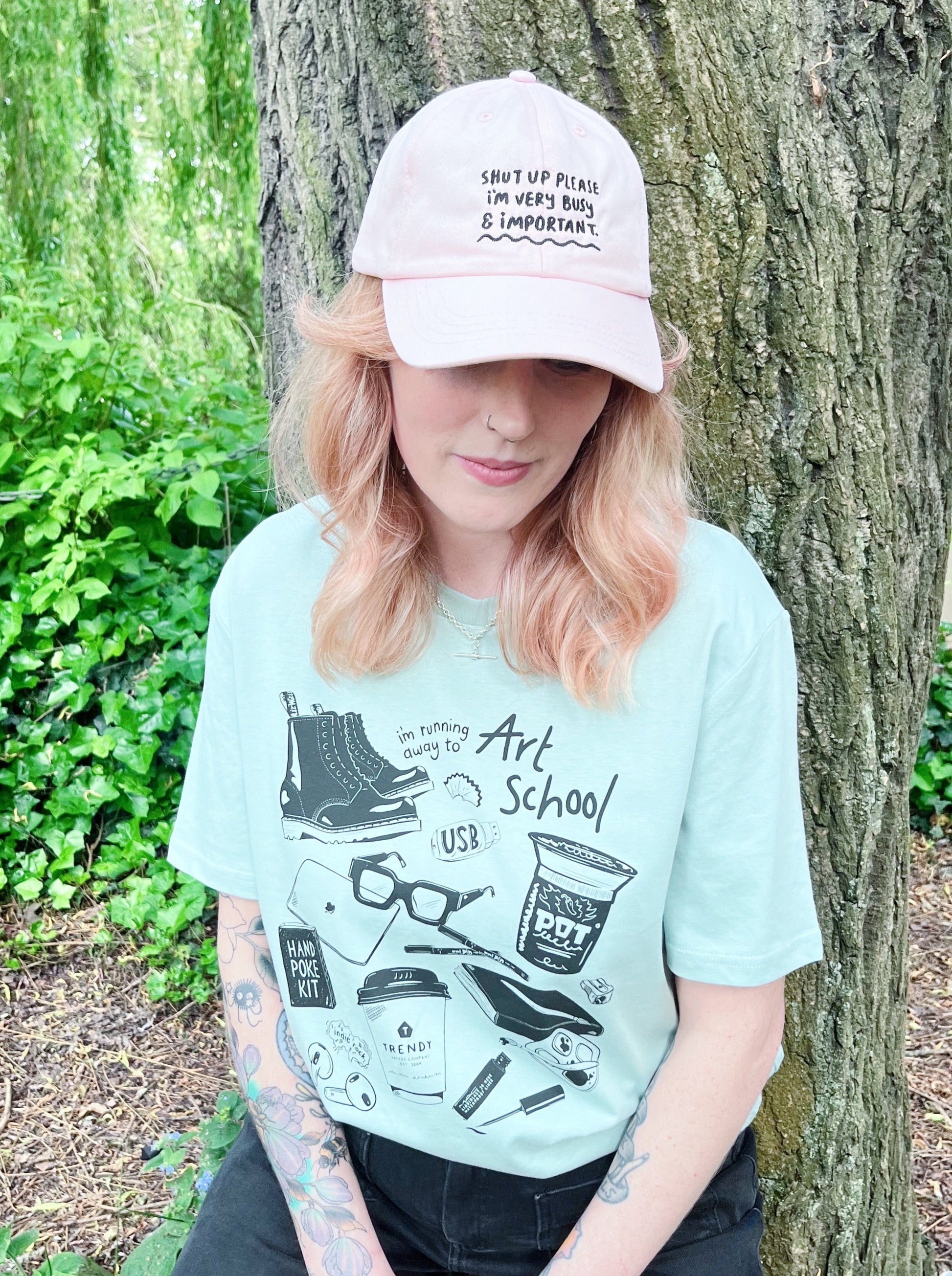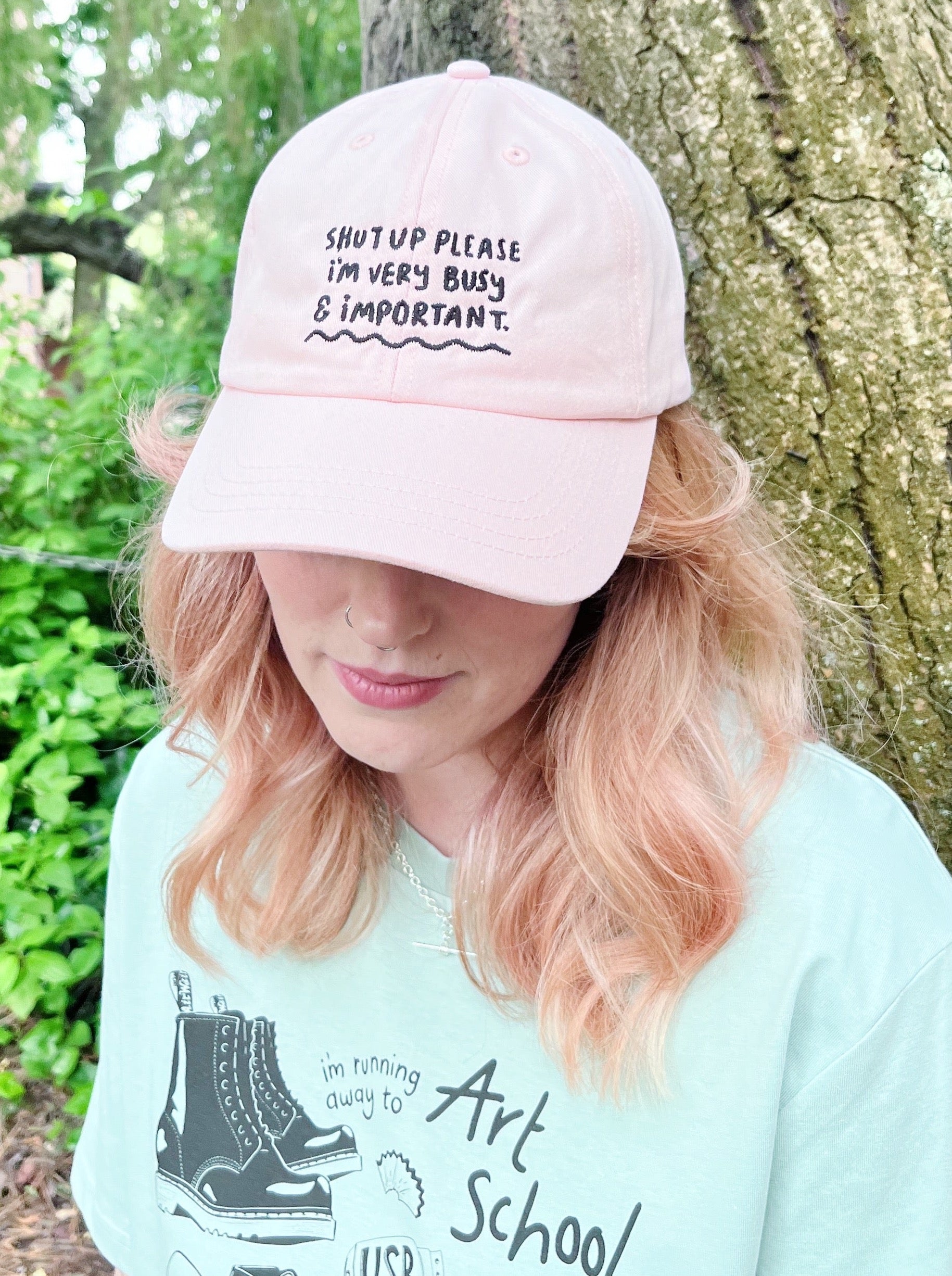 Inspired by Bridget Jones! Shut up please I'm very busy and important cotton candy pink cap