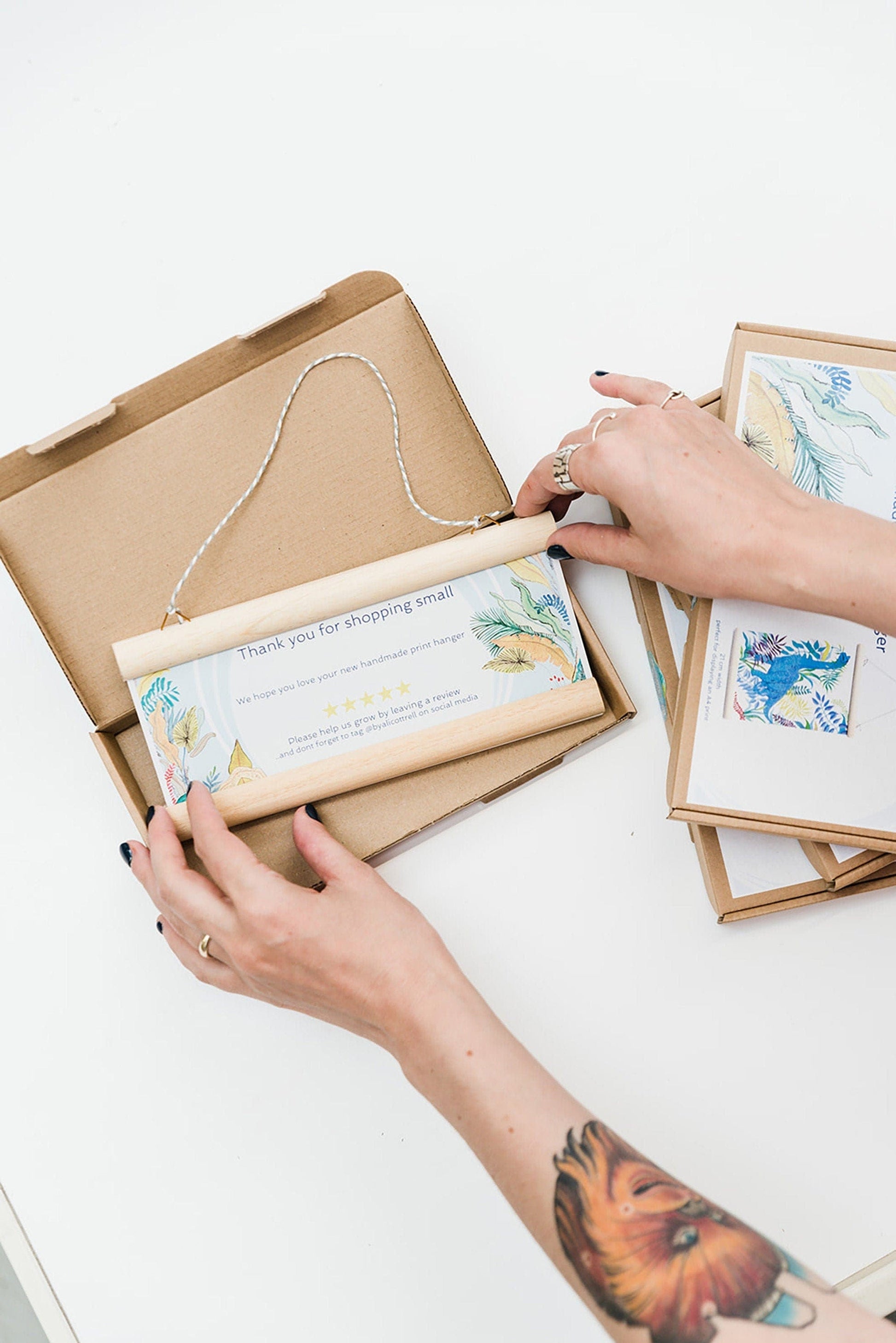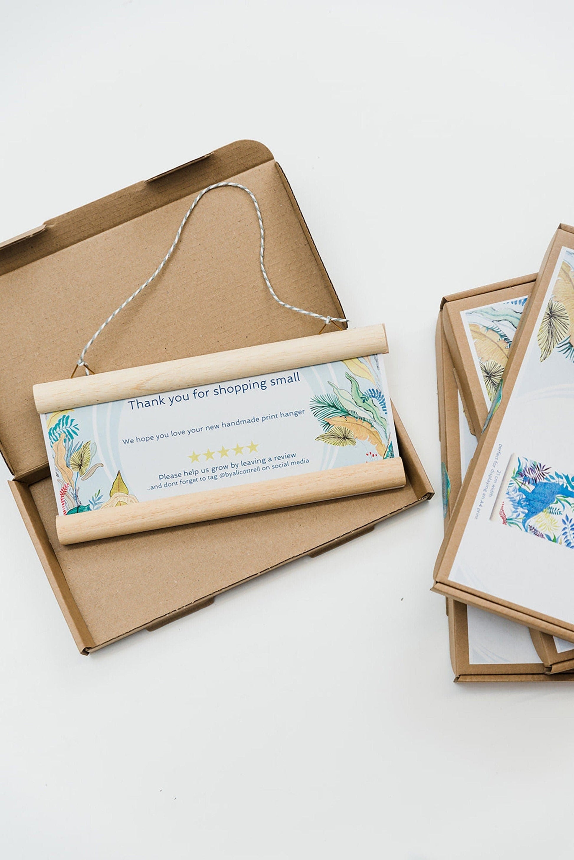 The poster hanger arrives packaged in its own printed presentation box, making it a perfect gift