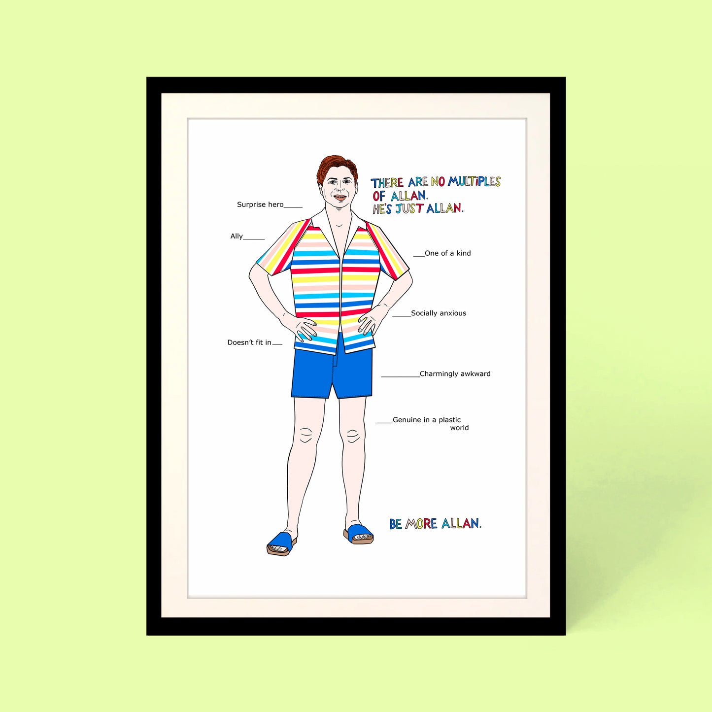 Allan is inspired by the genius Barbie movie, printed on a lovely archival matte specialist art paper.