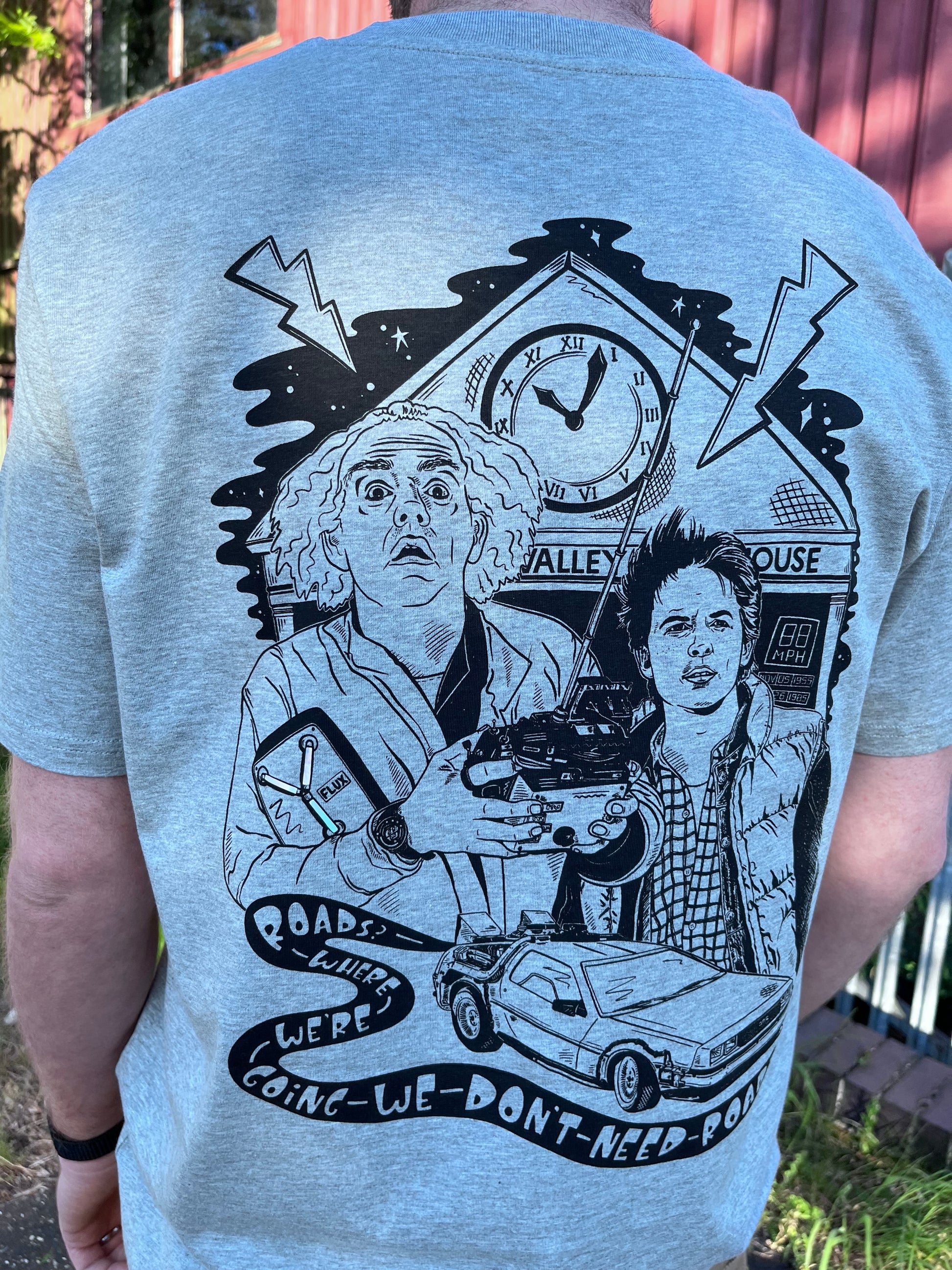 • + Cool sleeve screen print, inspired by the flames left on the tarmac by the time travelling Delorean!