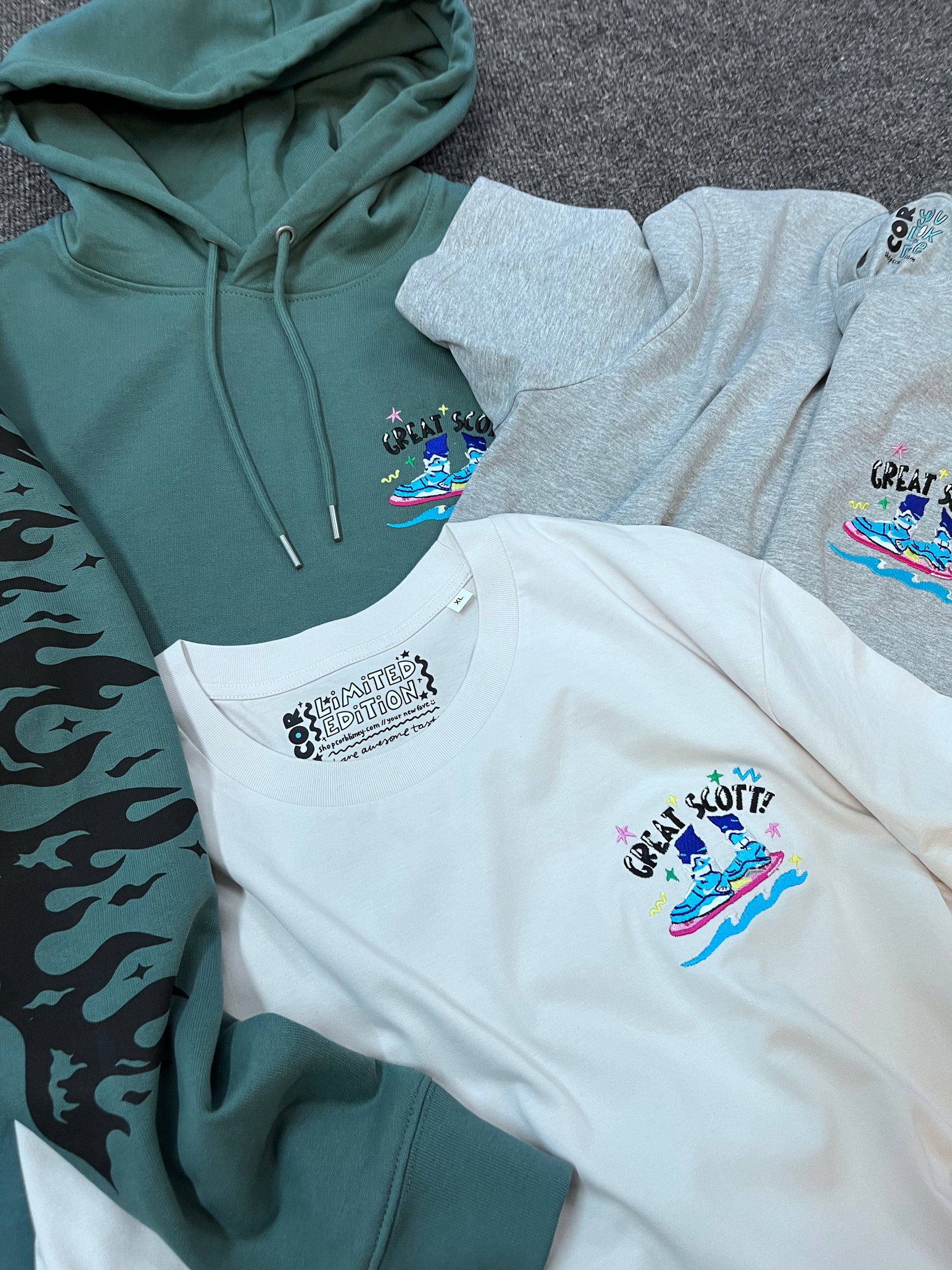 • Sustainable asf: Our t-shirts are sourced from a fair wear factory, made from sustainable materials and we print using water based inks for a lower environmental impact