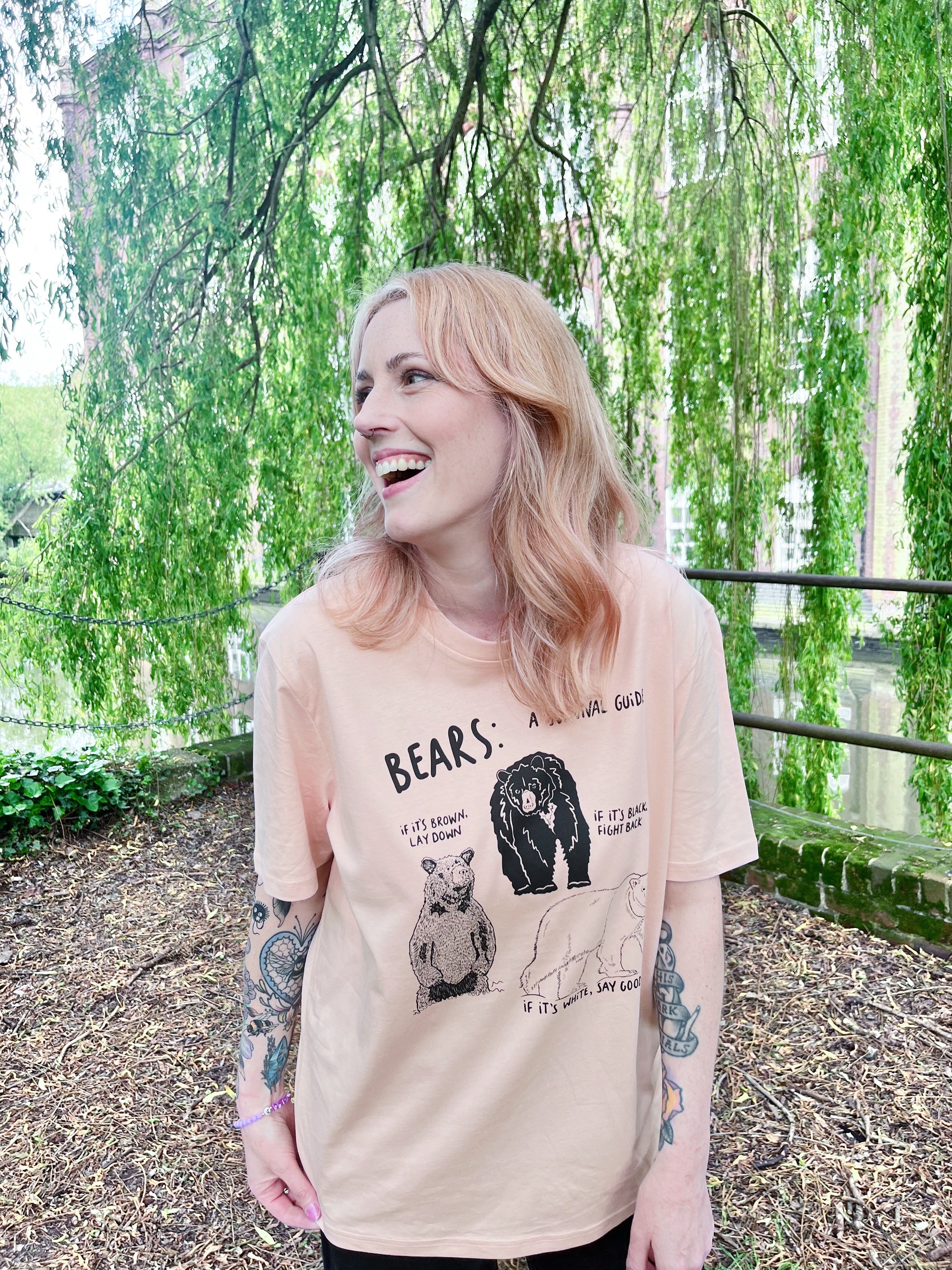 The Bears are printed by us on our super soft and sustainable oversize, unisex t-shirts in black ink.