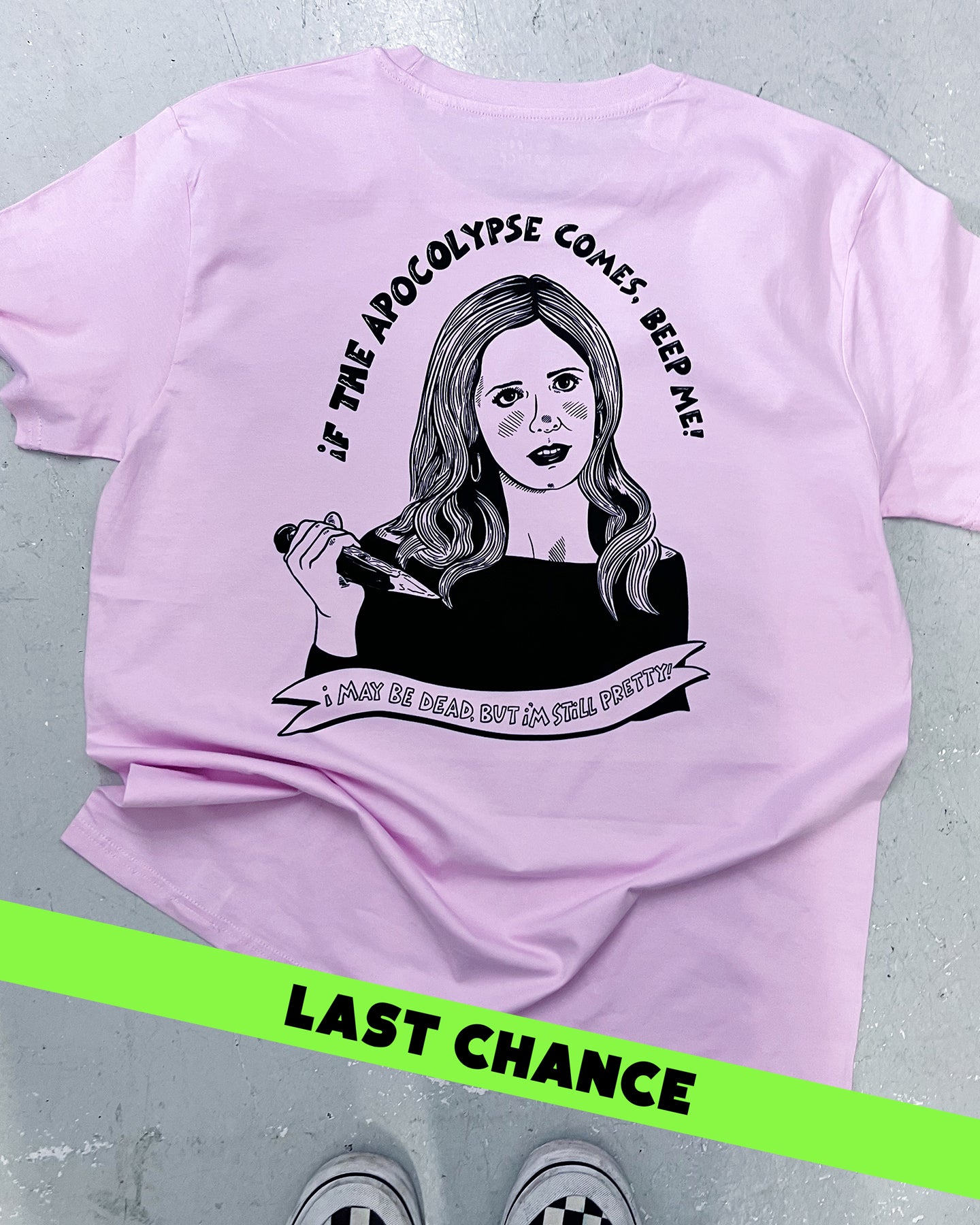 We've got a big portrait of the slayer on the back and a little 'ARG' demon printed on the front!