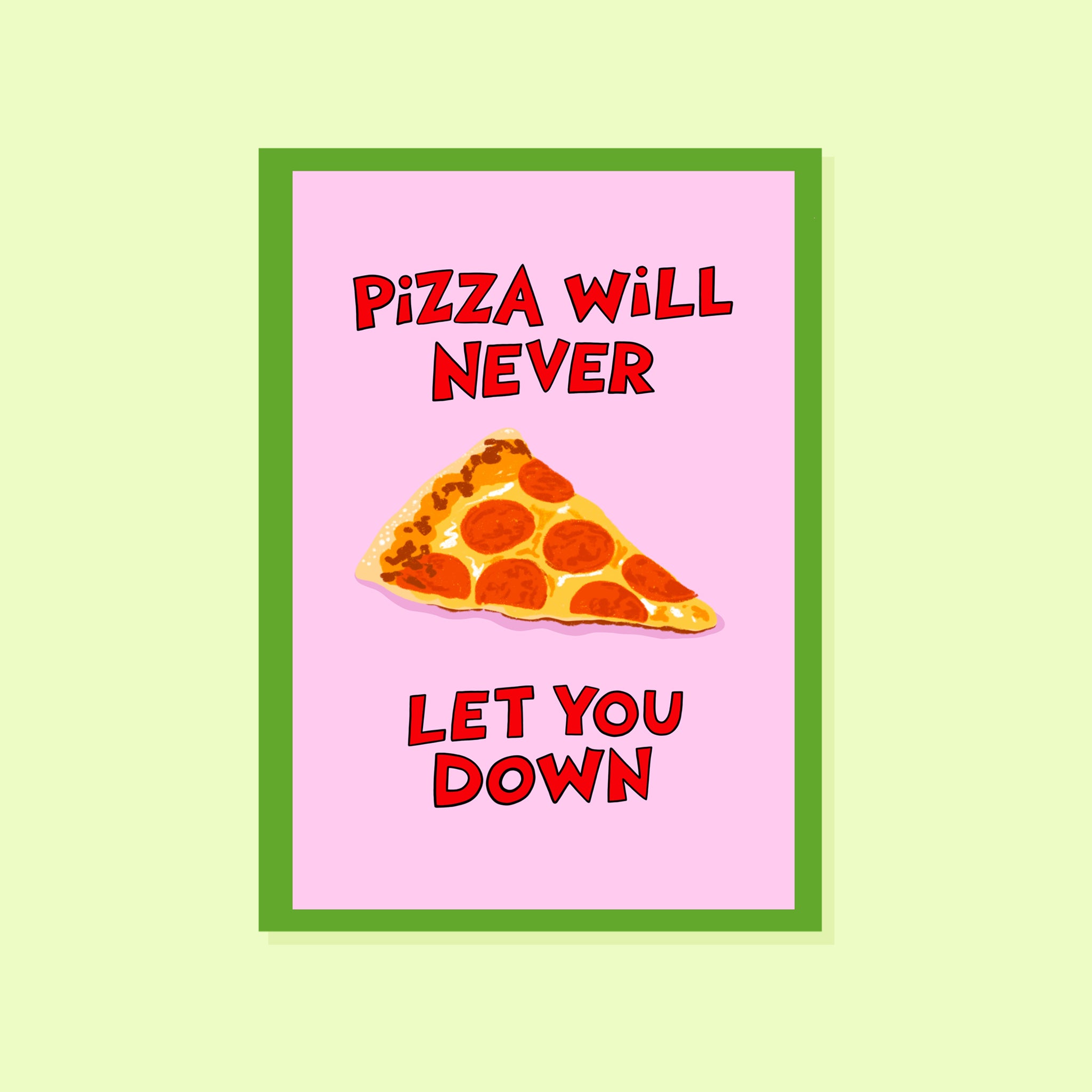 PIZZA WILL NEVER LET YOU DOWN GREETINGS CARD