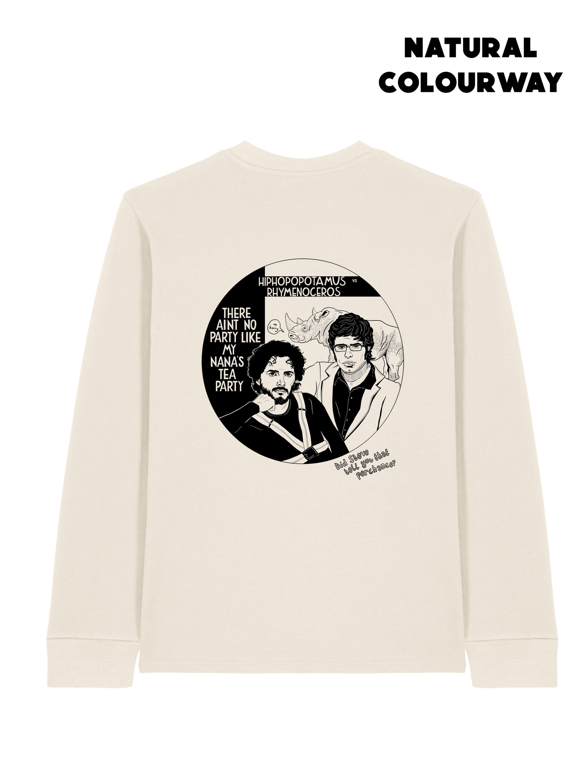- Large back screen print in black ink of Hiphopopotamus